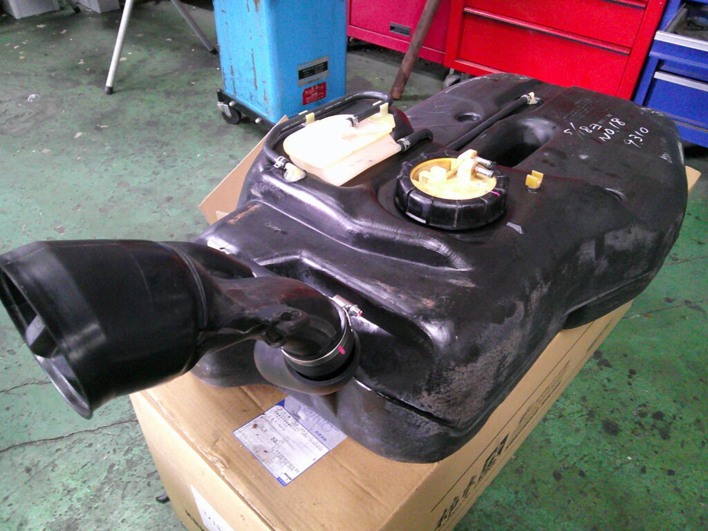 タンク本体も割れやヒビもなかったので良かったです。BNR32はガソリンタンクを2本の鉄系バンドステーで支えていてその場所からヒビ割れするケースがあるのでオーナーはガソリン漏れやにじみがないかたまに確認しましょう。