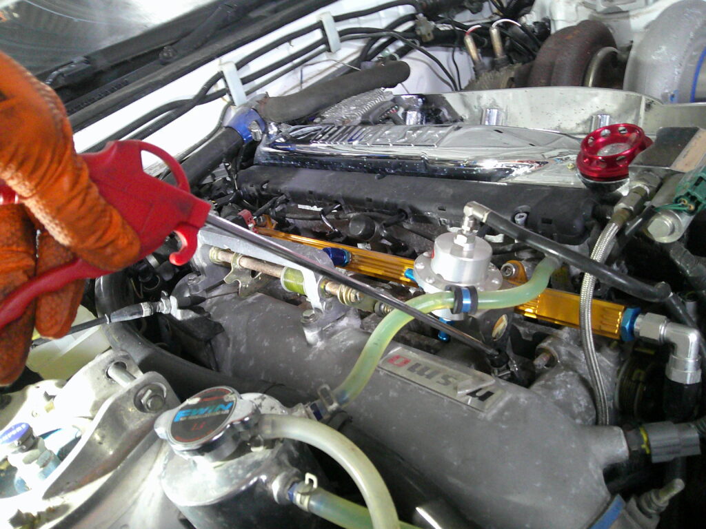 DEATSCHWERKS製 フューエルポンプを取り付けします。 通称DW300は340L/hの容量がありチューニングしているBNR32に最適です。