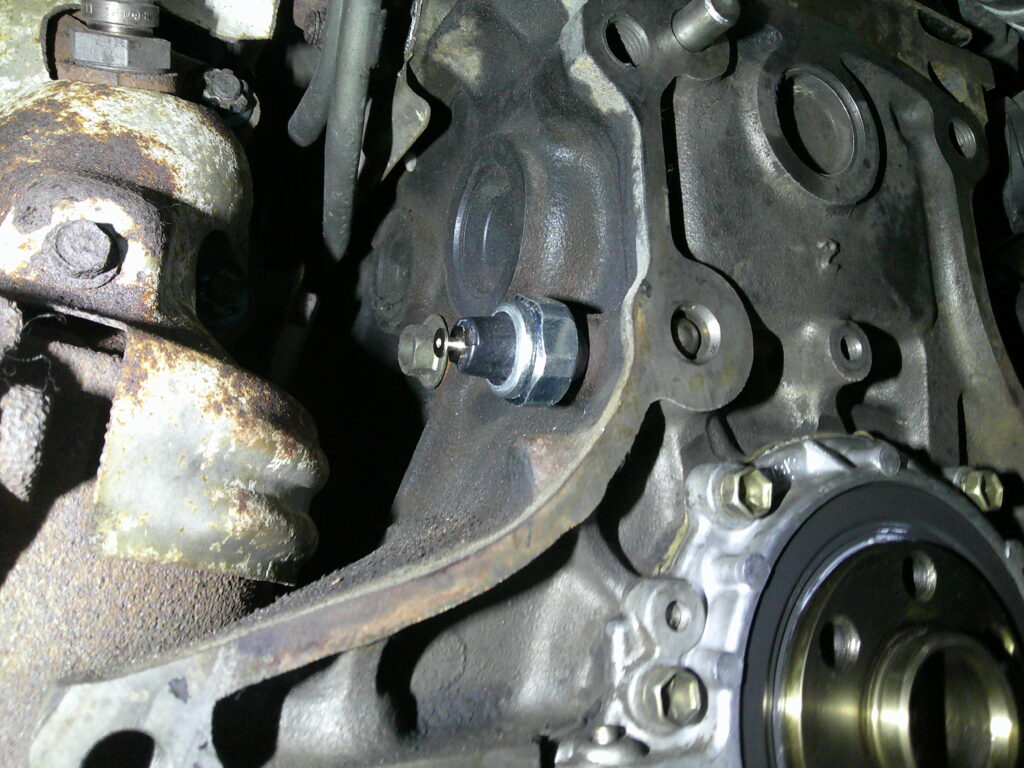 この場所に油圧センサースイッチが付いていますが、交換するにはミッションが降りている時か、触媒を脱着しない限り交換負荷な場所ですね!!! これは今のうちに交換しておきましょう^^