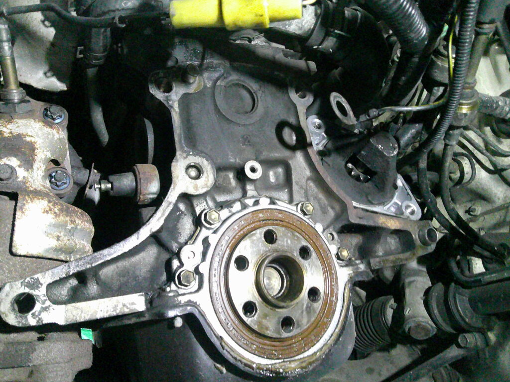 クランクリヤオイルシールからオイルが滲んでいましたので交換します。