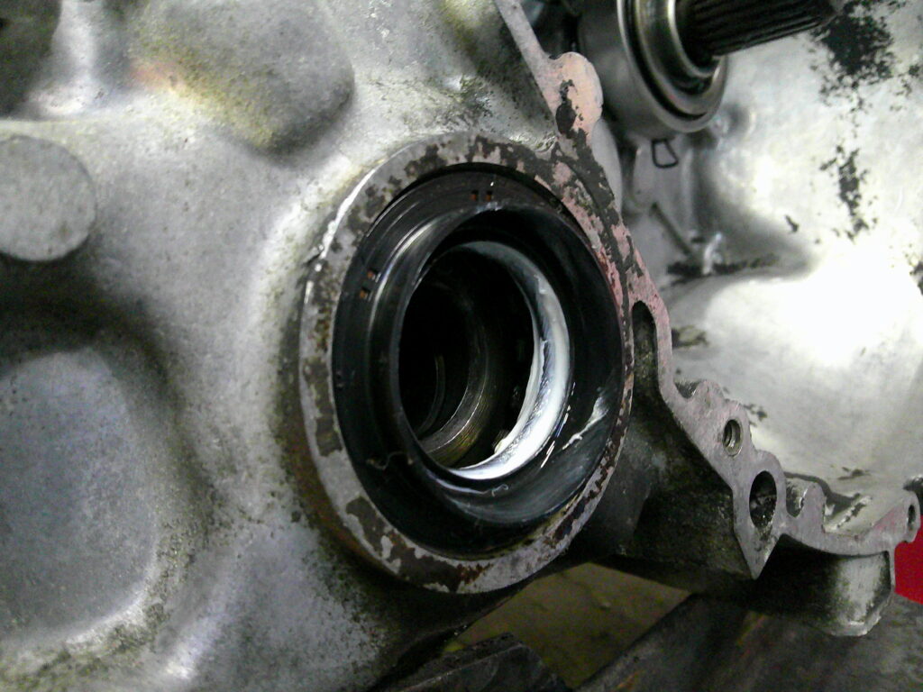 ドライブシャフトが入るオイルシールも硬化していたので新品に左右交換しました。