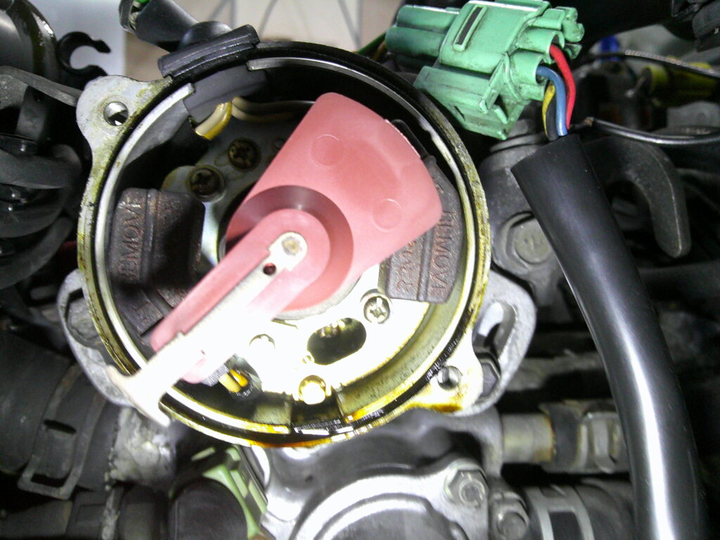 デスビの下からオイルが漏れるとのことでしたので点検して見ると、デスビキャップの中側からでした!!! これはヤバい!