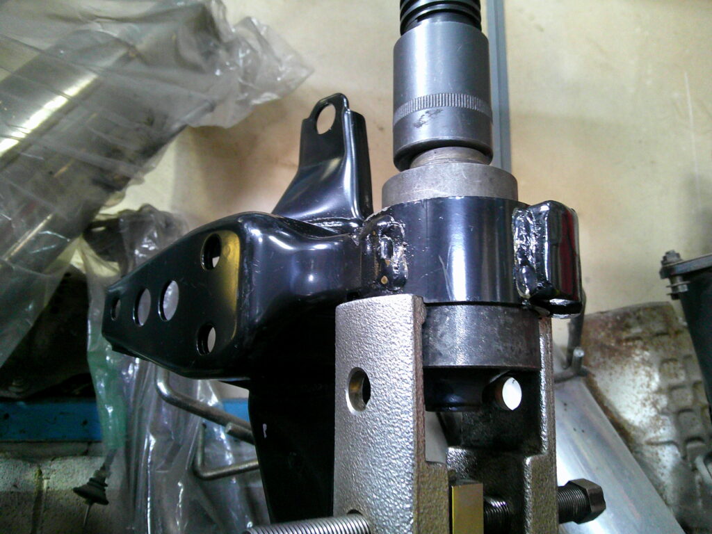 続いてはリヤ側ミッションメンバーブッシュの交換です。 これも同じようにEP〇〇用を流用します。まずはブッシュをぬきとりましょう。