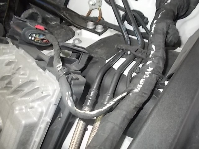 クーラント水が漏れて修理されていたことが分かるエンジンルーム!