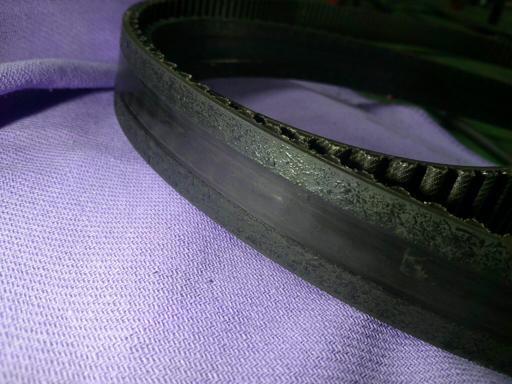画像でも分かるようにベルトが擦れていたことがわかるだろう💦 これはクリアランス調整が出来ていなかったことの証明である。取り付けボルトも緩んでいなかった!