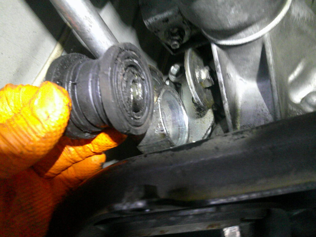 ブーツカスか! ブッシュカラー3つの内の一つがここの位置に1つ取り付けされています。新品に交換して行きます。