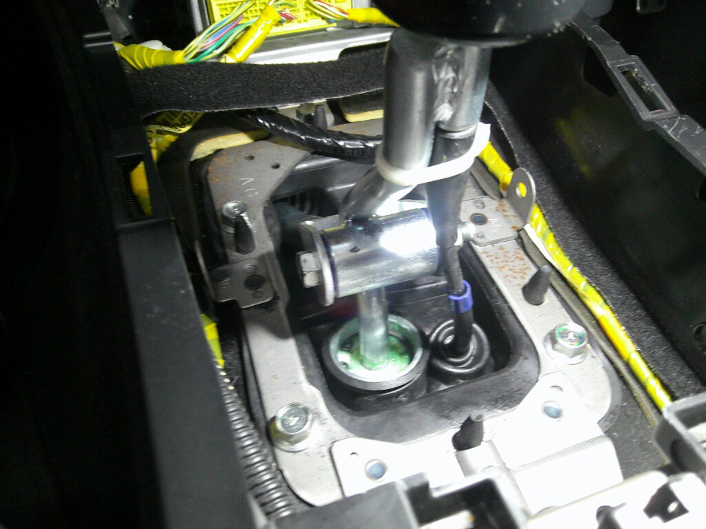 シフトのニュートラルポジション時で円周が描けるぐらいグラグラ状態になる症状の修理をしていきます。まず!写真を見るとなんだか黒いカスが・・・・