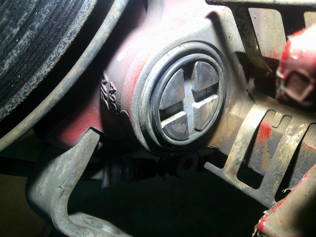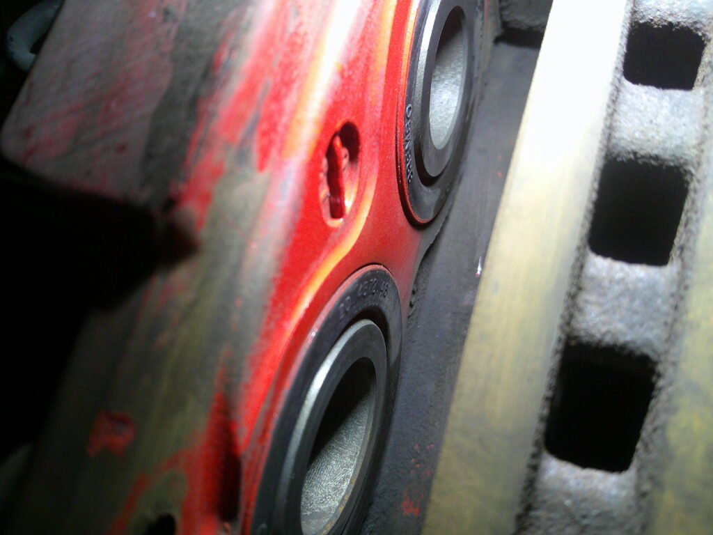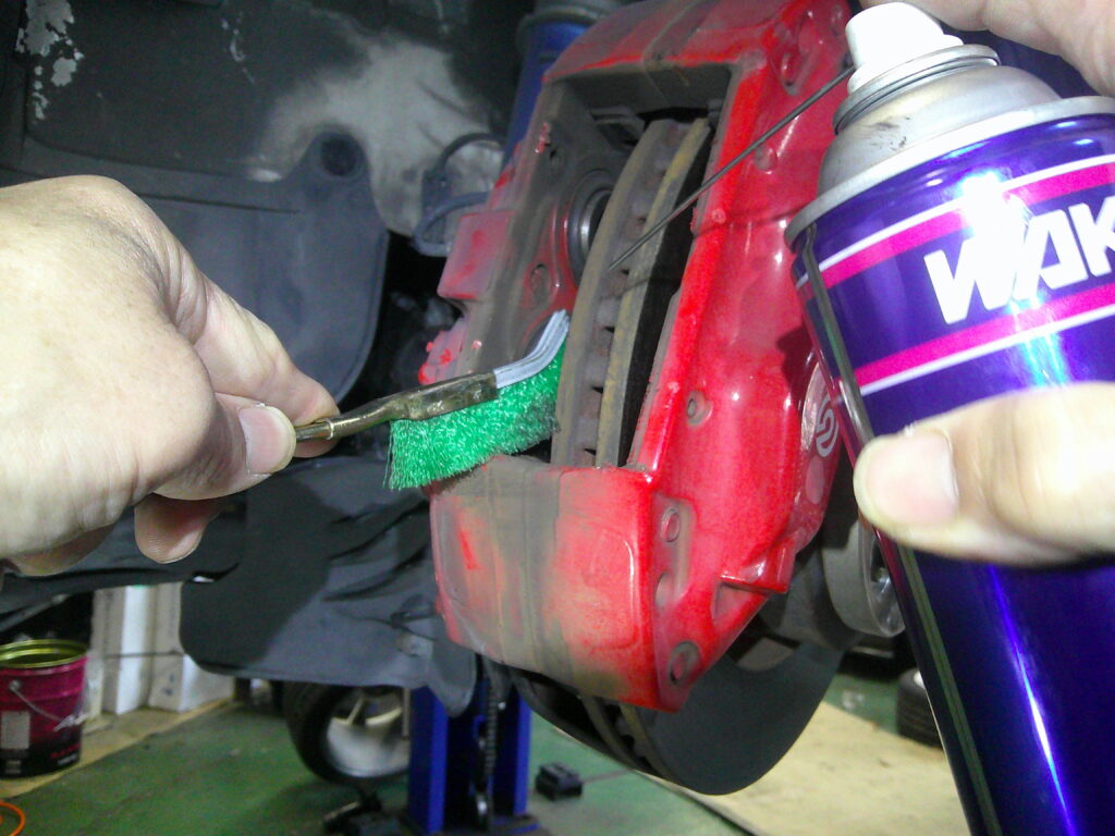 純正レッドキャリパーもクリヤーが所々剥げてFD2もそんな時代車に・・・って感じながらの作業です。ストリート仕様では問題ないレッドキャリパーはサーキット走行になると容量不足となるのでそんなステージを楽しむオーナーは社外キャリパーに交換することをお勧めします。